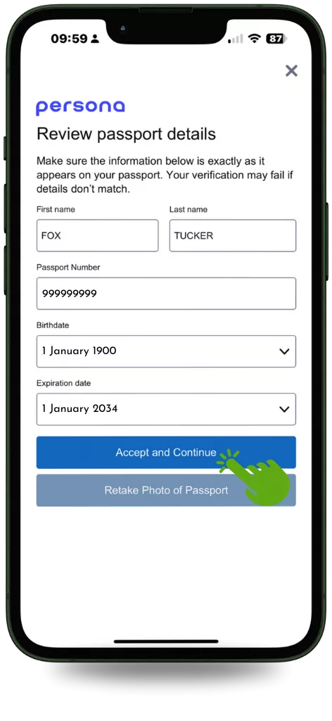 Step 6: Scan your Passport and Confirm Your Details